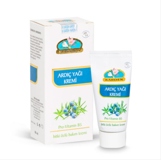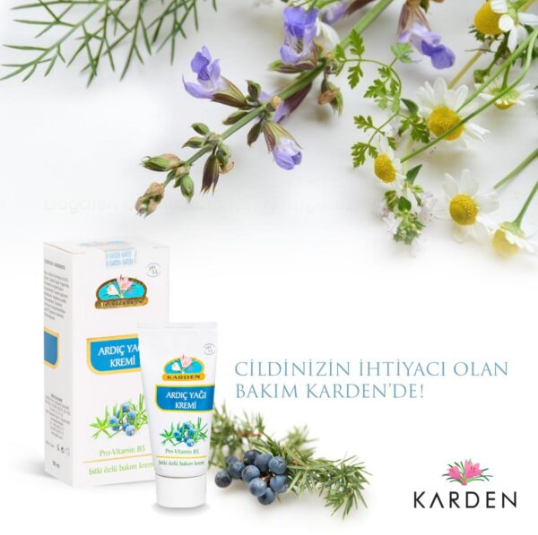 Karden ardıç kremi cildinizin ışıltısını size geri kazandırmak amacıyla doğal bitkisel yağlardan elde edilmektedir. Doğal içeriği ve yoğun nemlendirme özelliği ile ardıç kremi cilde faydaları oldukça fazladır. Tonik etkisi bulunan ardıç kremi cildi derinlemesine temizleyerek toz, kir ve makyaj kalıntılarından temizlemektedir. Gözeneklerin sıkılaşmasına etkisi olan ardıç kreminin cilt çatlaklarına iyi geldiği bilinmektedir.
